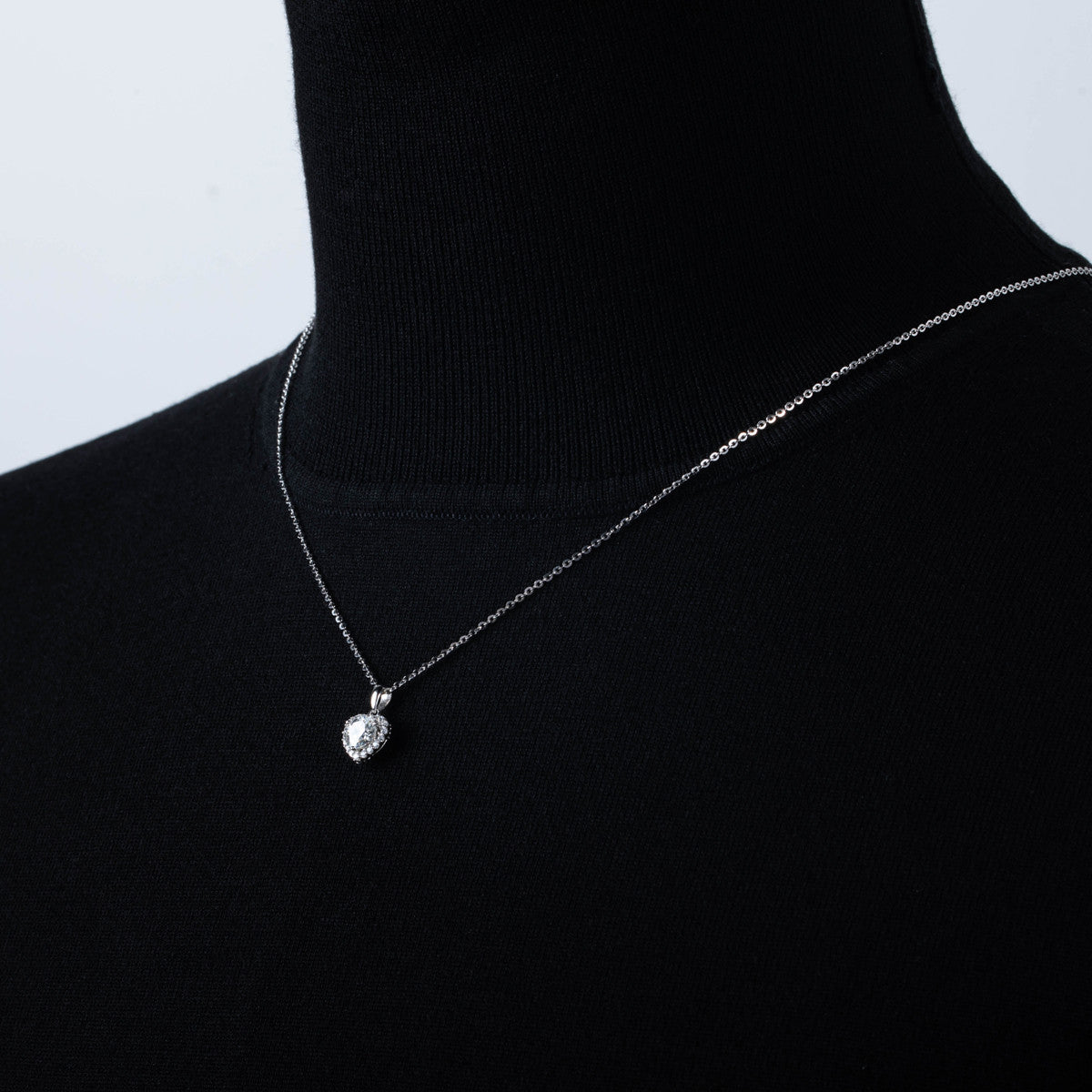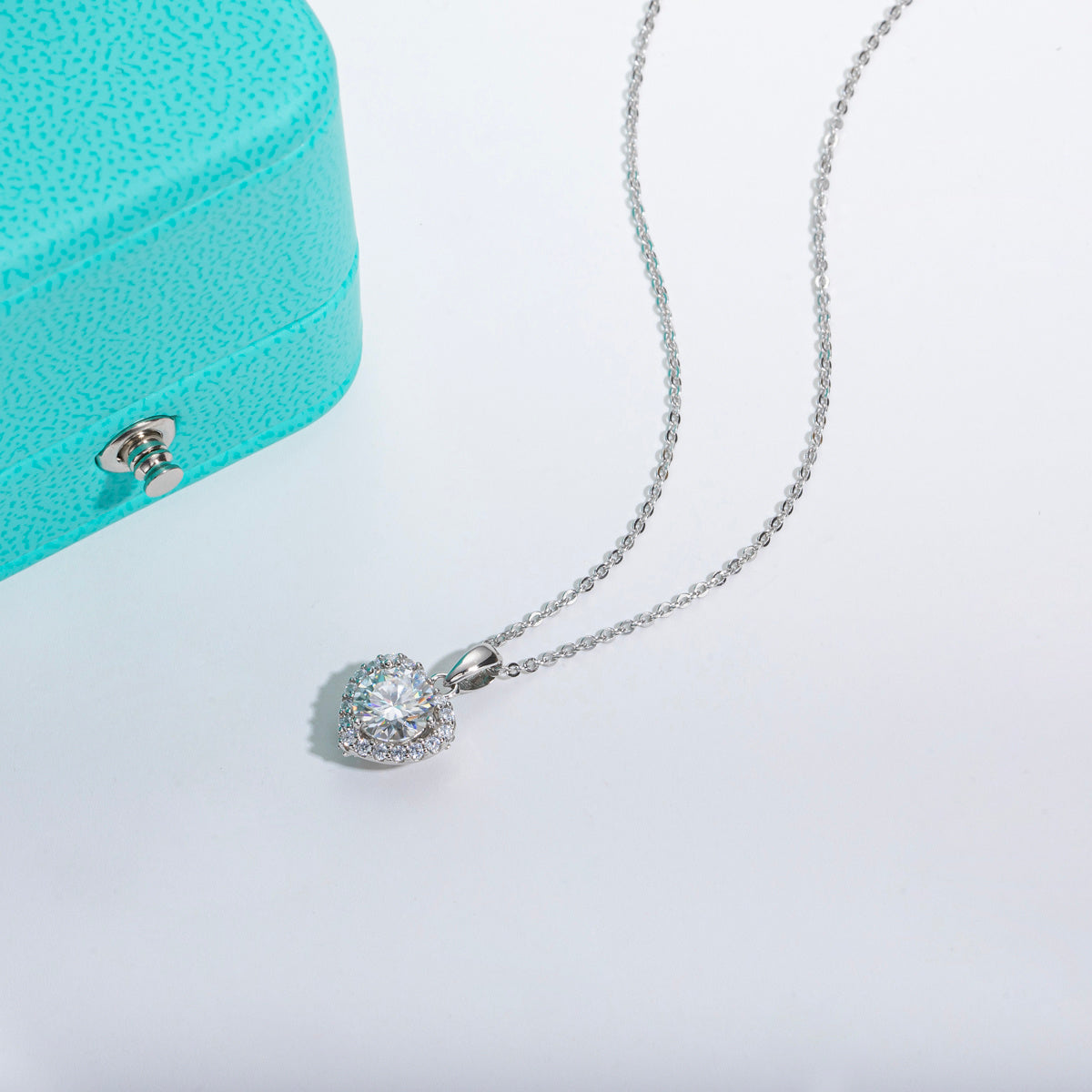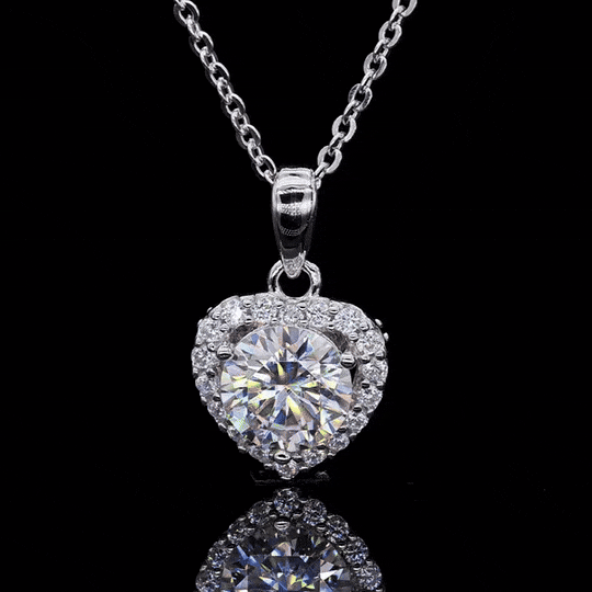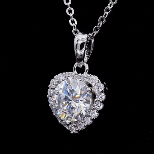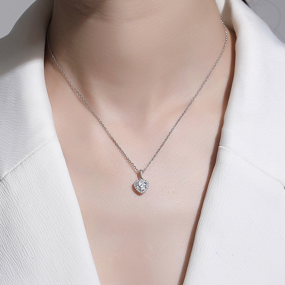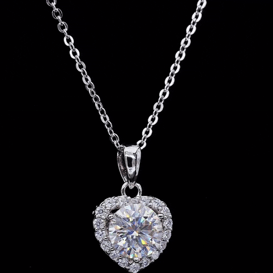 L'argent sterling 925, réputé pour sa durabilité et son éclat nacré, forme la base de ce collier exquis. Le pendentif en forme de cœur, symbole universel d'amour et de tendresse, est magnifié par la présence d'une moissanite étincelante d’1 carat. Cette pierre précieuse, aussi brillante qu'un diamant, capte et réfracte la lumière de manière spectaculaire.