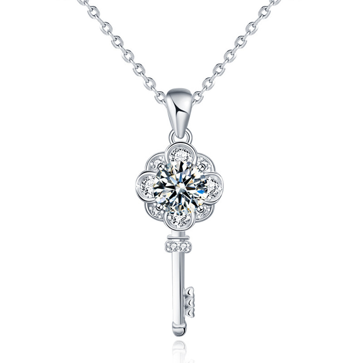 Ce collier motif clé est réalisé en Argent 925 de qualité supérieure et le cœur est une pierre de Moissanite 1 Carat.