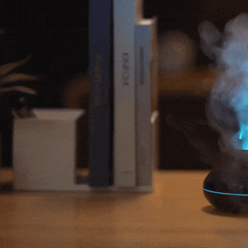 Le diffuseur se met alors en marche et diffuse les molécules aromatiques dans l'air, tout en illuminant la pièce avec ses flammes dansantes.