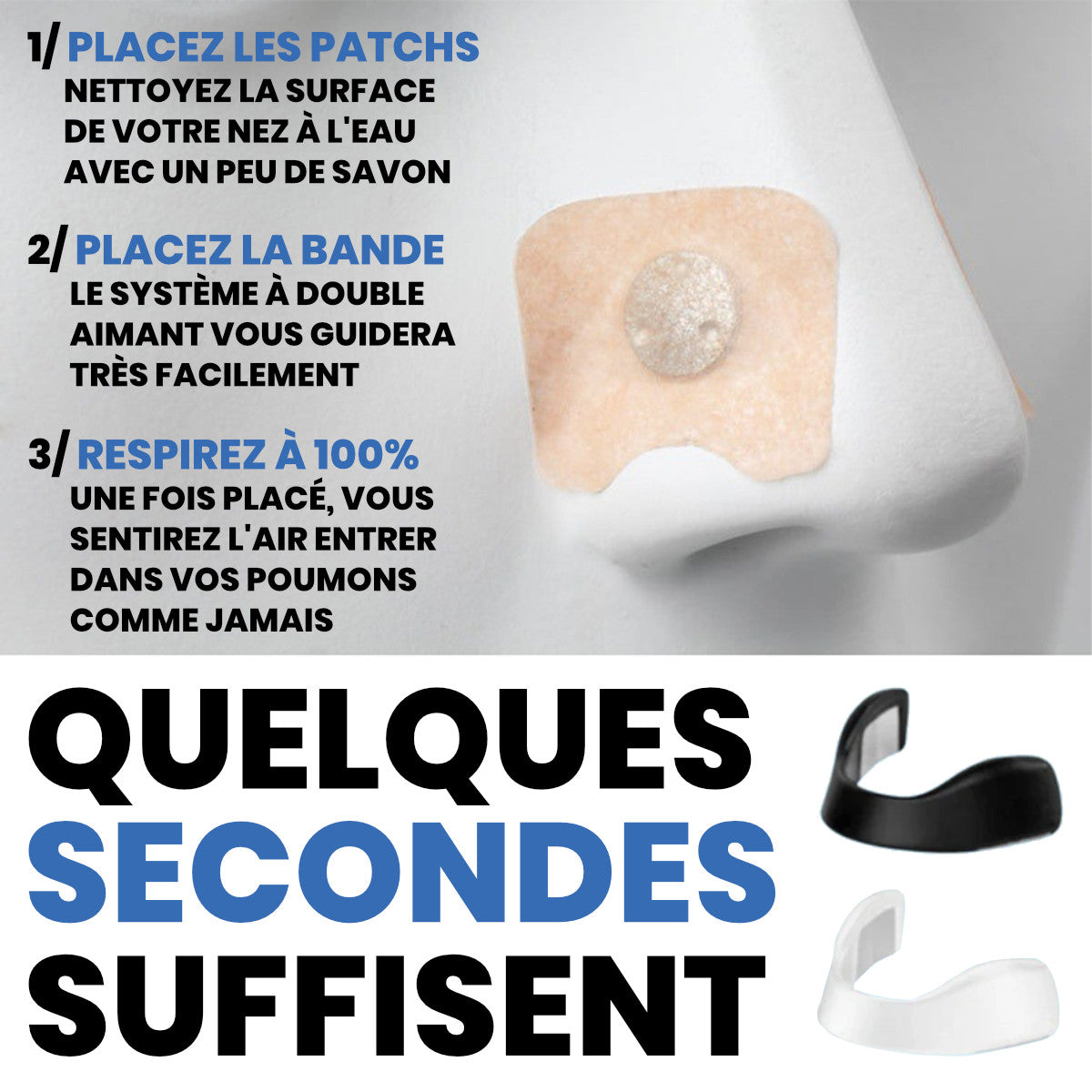Grâce à son système de double aimant innovant, les bandes nasales restent fermement en place, même pendant des nuits agitées ou lors d’activités sportives. Vous n’aurez plus à vous soucier de repositionner le dispositif, il est conçu pour rester avec vous jusqu’à la fin. Testé et approuvé !