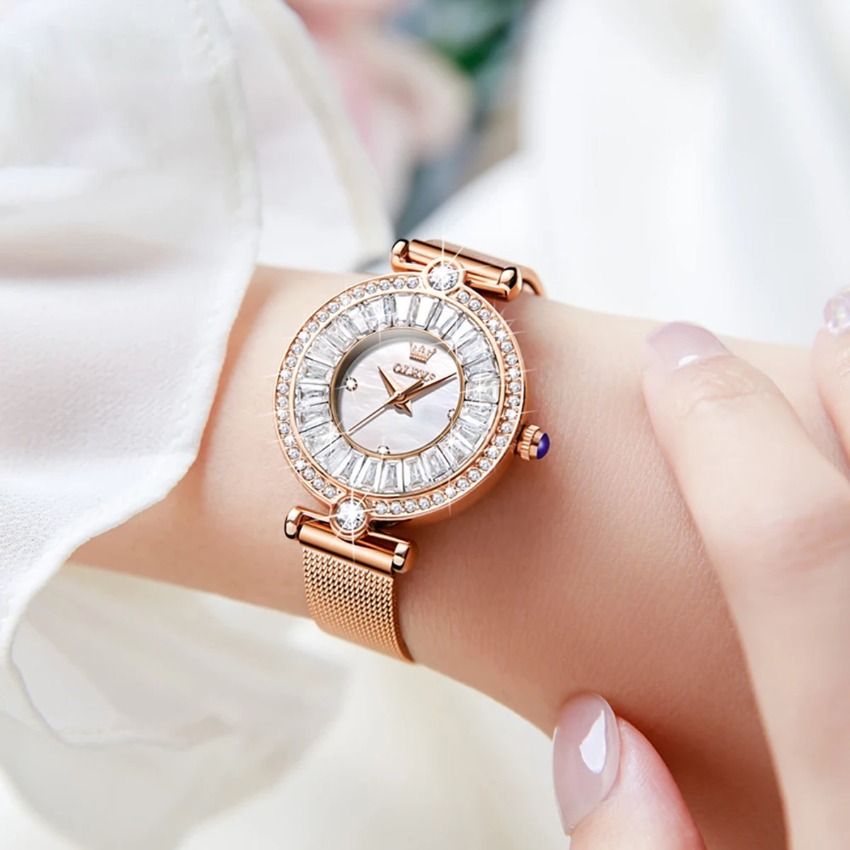 Cette montre femme reste incontournable pour ajouter une touche de glamour et de chic à votre look. Les diamants artificiels étincelants ajoutent une note de luxe et d’originalité à cette montre élégante, tandis que le bracelet en alliage offre une durabilité et une résistance à l'usure.