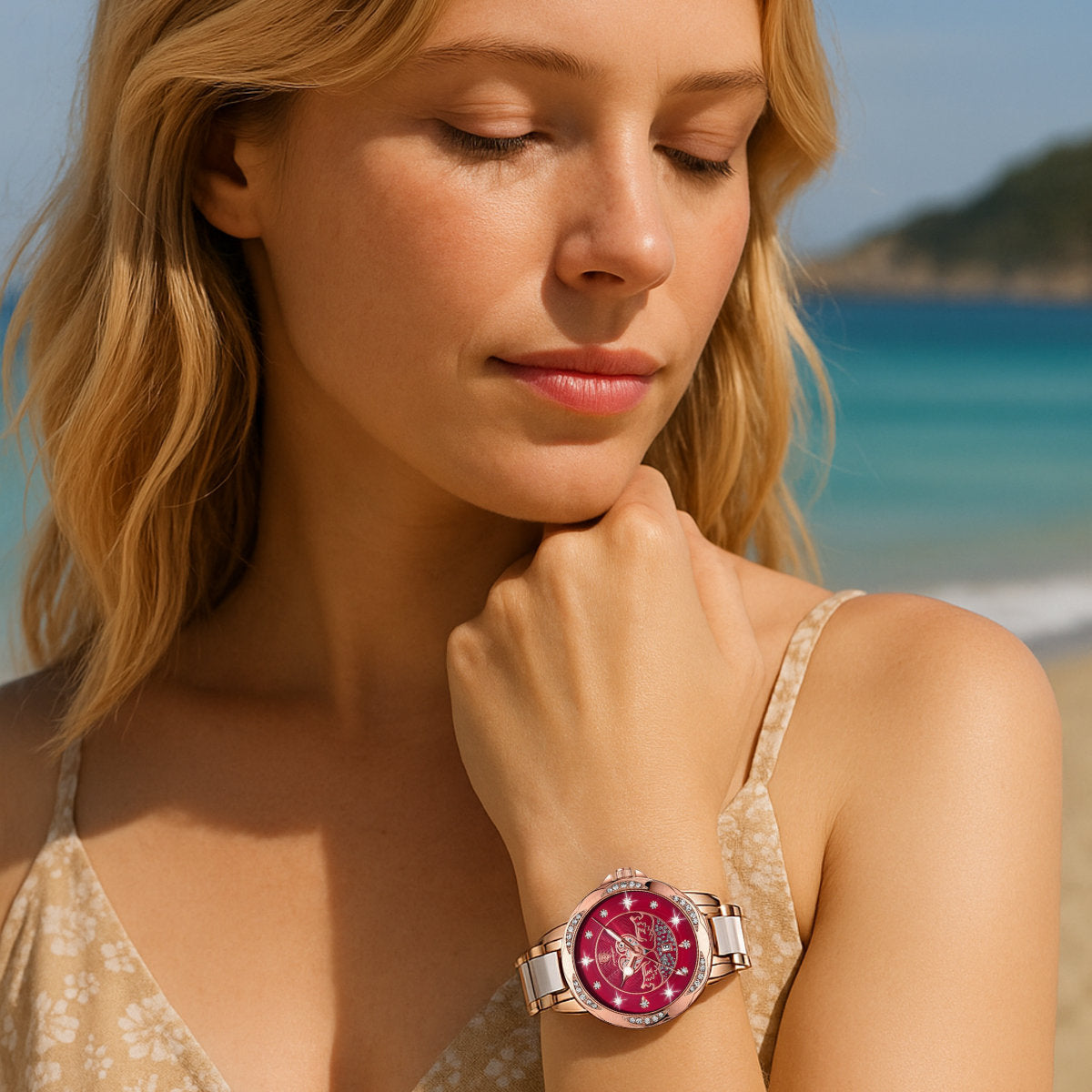 Porter la montre femme TIMELESS BEAUTY, c'est affirmer son unicité. Faites une déclaration de style sans mots, laissez cette montre exclusive être le symbole de votre personnalité affirmée et de votre goût exquis.