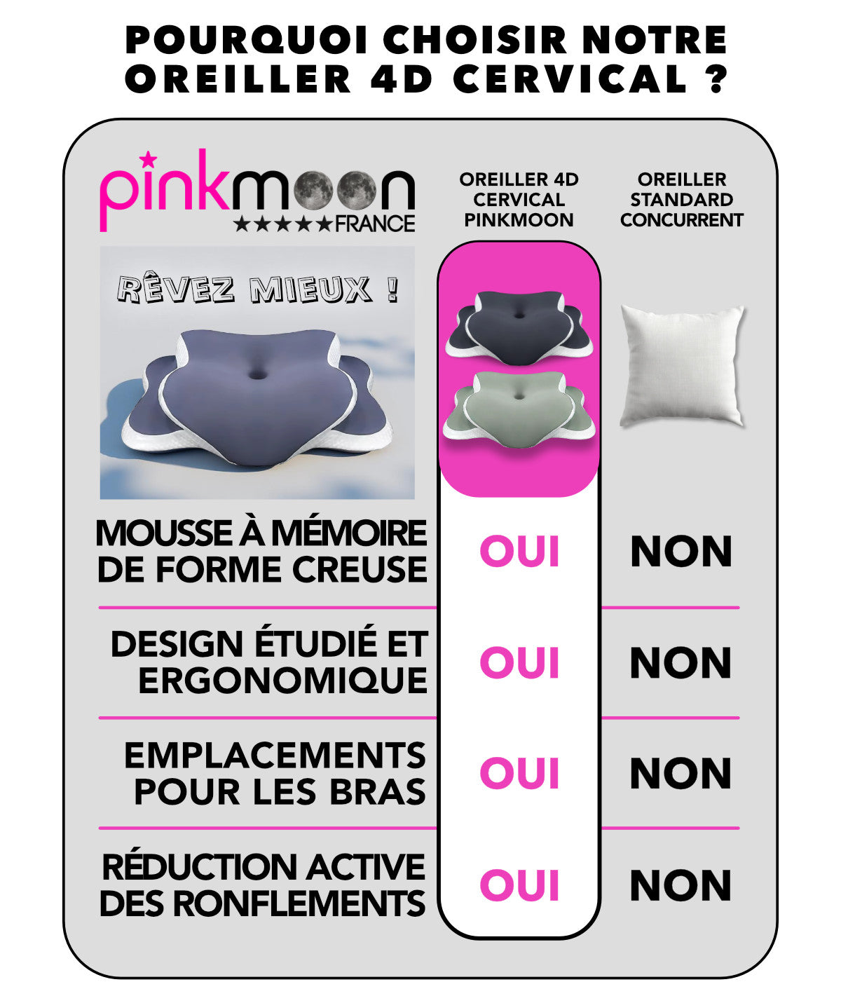 Oreiller 4D Cervical Ergonomique PINKMOON