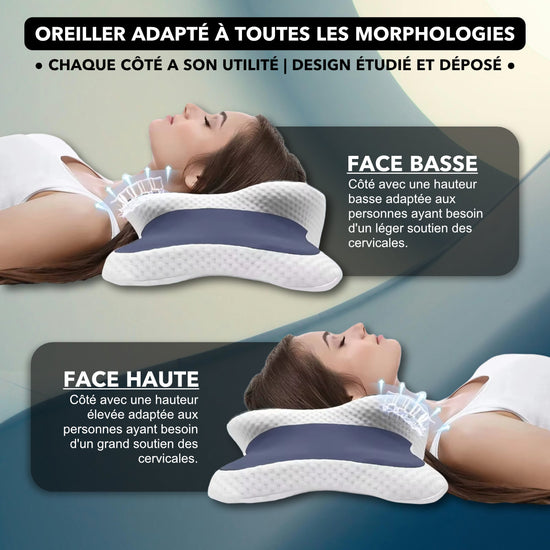 Oui, cet oreiller cervical a été pensé pour s’adapter à toutes les positions de sommeil, y compris sur le ventre. Sa forme ergonomique soutient délicatement la nuque et les épaules, même si vous changez souvent de position pendant la nuit.