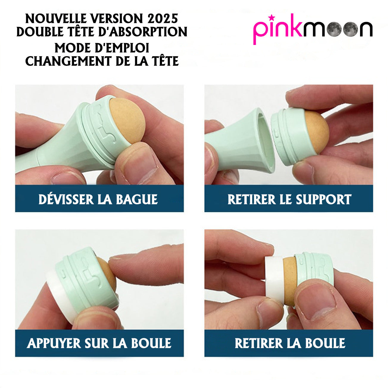 La conception du Rouleau Absorbeur de Sébum PINKMOON a été étudiée afin de pouvoir retirer très facilement les deux boules absorbantes afin de les nettoyer ou de les changer.