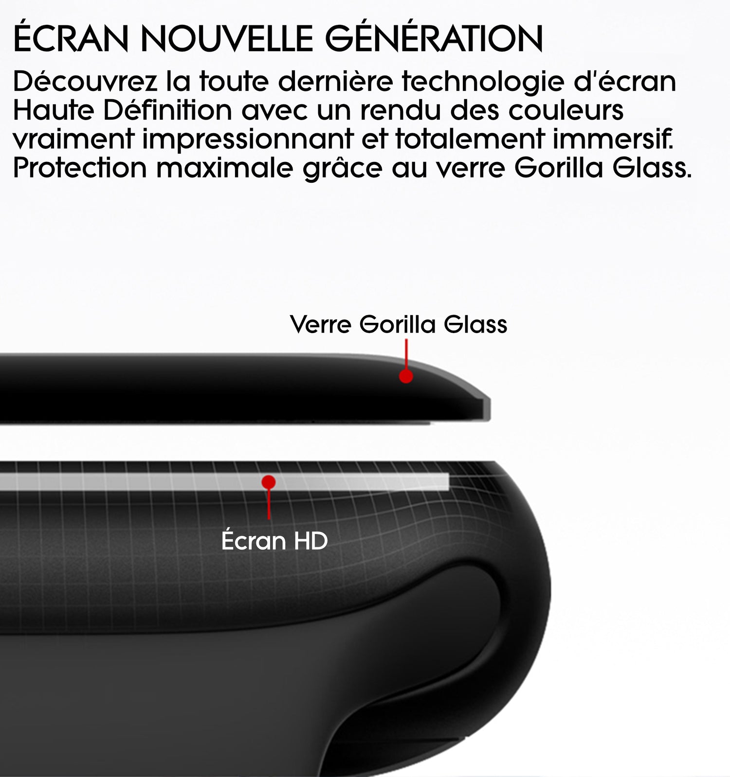 Ce magnifique écran tactile Haute Définition en verre « Gorilla Glass » (résistant aux chocs et aux rayures) vous laissera sans voix. Restitution parfaite des couleurs et fond d’écran paramétrable.